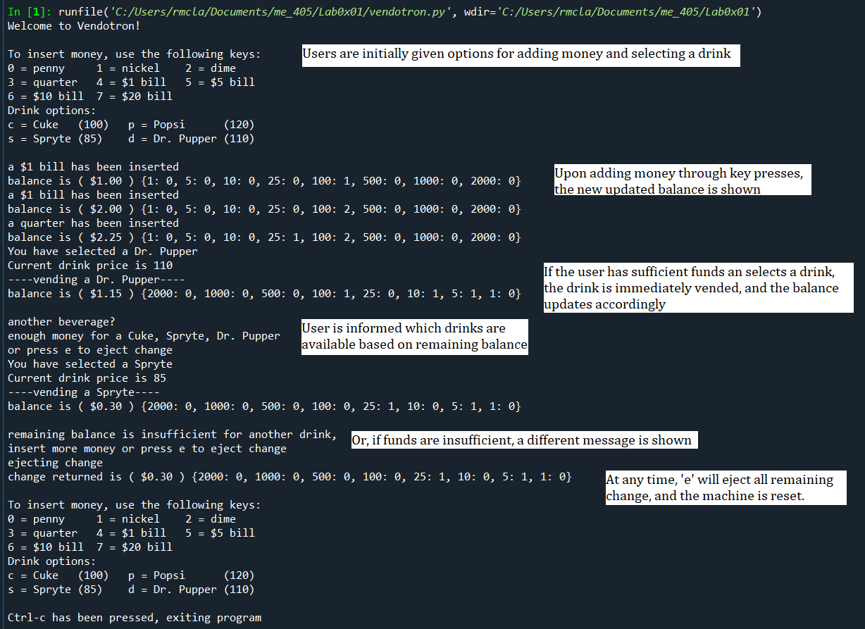 To demonstrate how a user would interact with this program, see the annotated image below for one example of user interaction:
