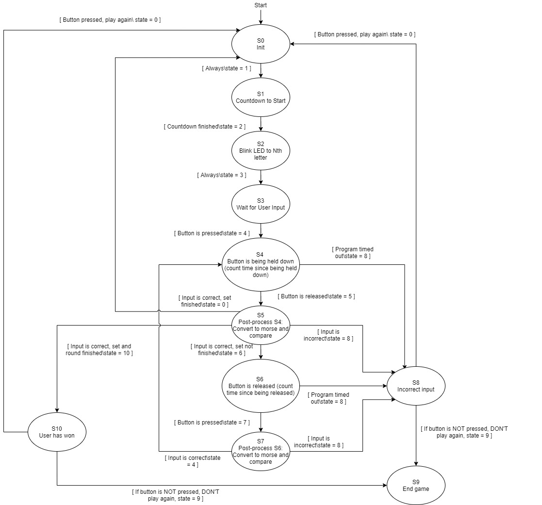 In desinging a Simon Says type game, we decided to implement a single class to contain all methods for gameplay. This includes methods for generating morse code patterns, blinking an LED on the Nucleo Board, keeping score, and a few others related to the workflow of code.