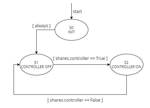 Using this sequence, we can achieve setpoint or reference tracking, depending on the reference data set. See Figure F.7 below for the state transition diagram of the controller task, and see controllerTask.py for full file documentation.